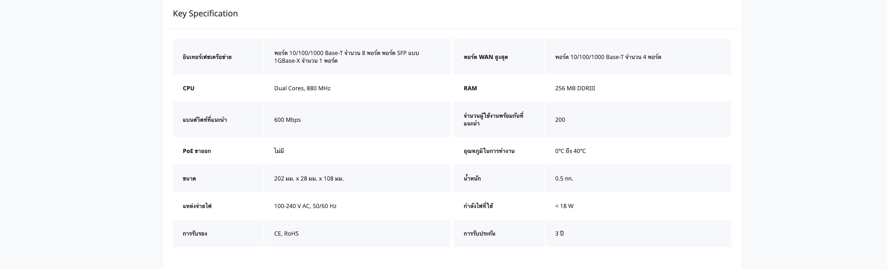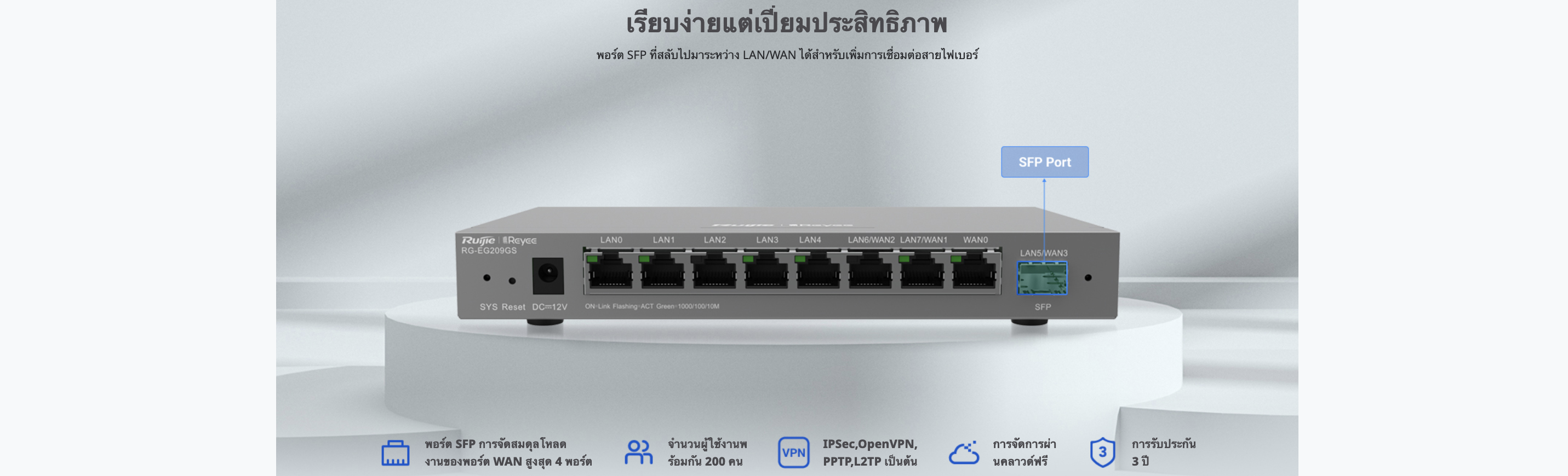 • พอร์ต SFP ที่สลับไปมาระหว่าง LAN/WAN ได้สำหรับเพิ่มการเชื่อมต่อสายไฟเบอร์
