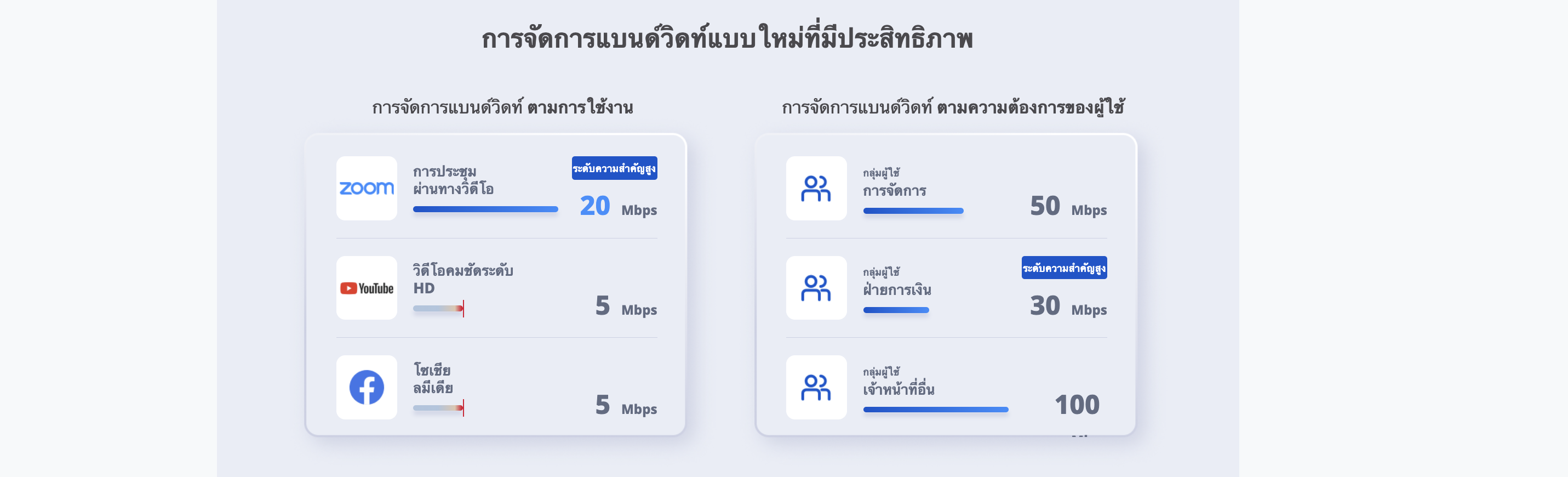 • การจัดการแบนด์วิดท์ที่มีประสิทธิภาพโดยอิงตามการใช้งานและผู้ใช้