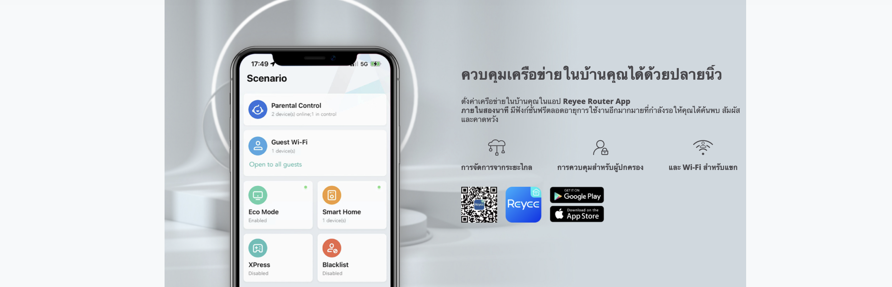 • Mesh ของ Reyee ช่วยให้คุณเชื่อมต่อด้วยสัญญาณที่ไม่มีขีดจำกัดในทุกที่ที่คุณไป
