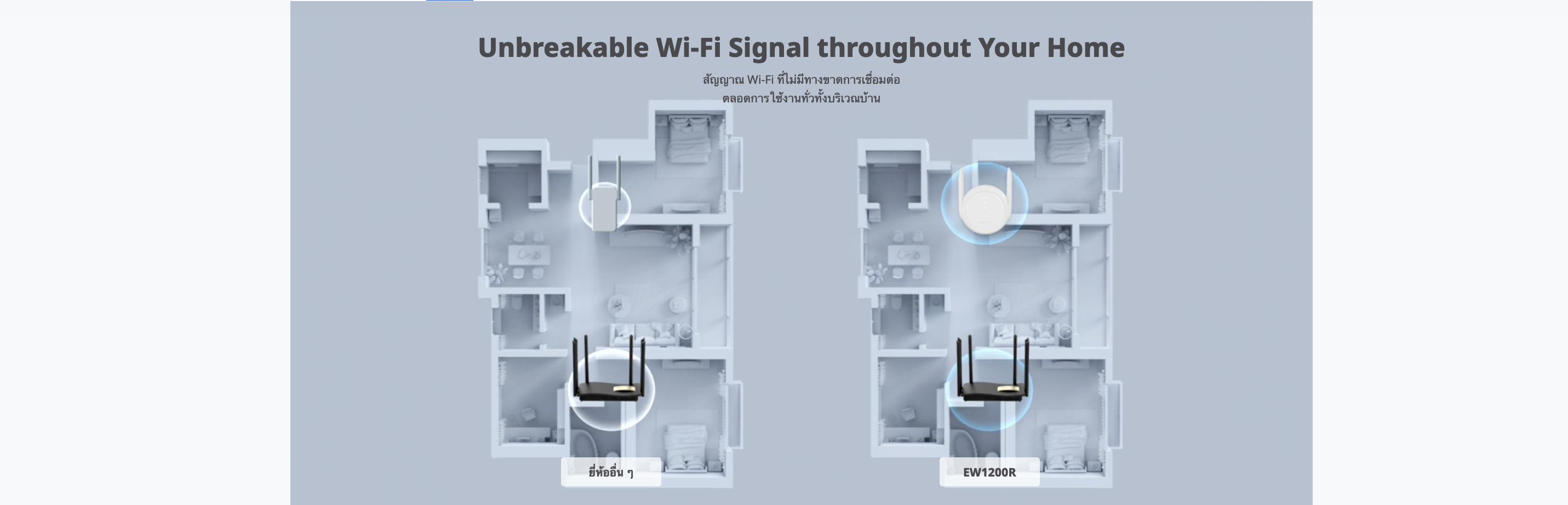 • มีตัวขยายสัญญาณในตัว ช่วยให้สัญญาณ Wi-Fi ไม่มีทางขาดการเชื่อมต่อตลอดการใช้งานทั่วทั้งบริเวณบ้าน