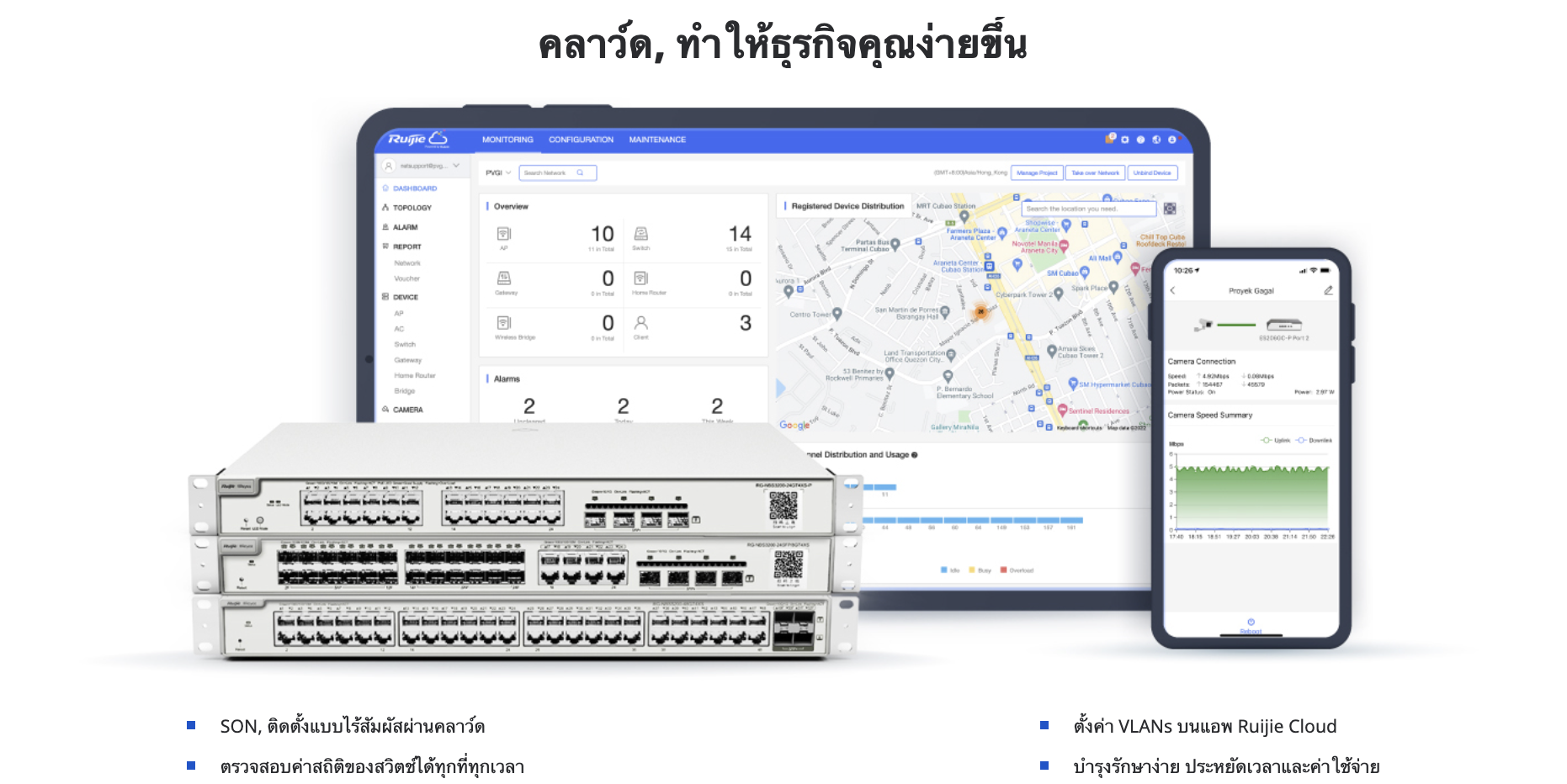 • การจัดการผ่าน Ruijie Cloud ได้ตลอดอายุการใช้งานได้ทุกที่ ทุกเวลา
