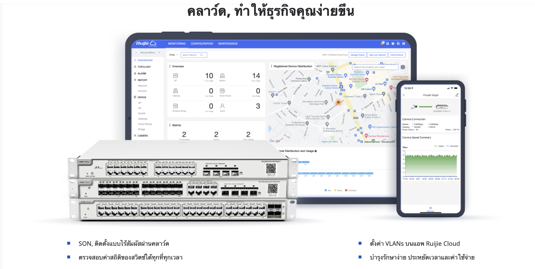 • การจัดการผ่าน Ruijie Cloud ได้ตลอดอายุการใช้งานได้ทุกที่ ทุกเวลา