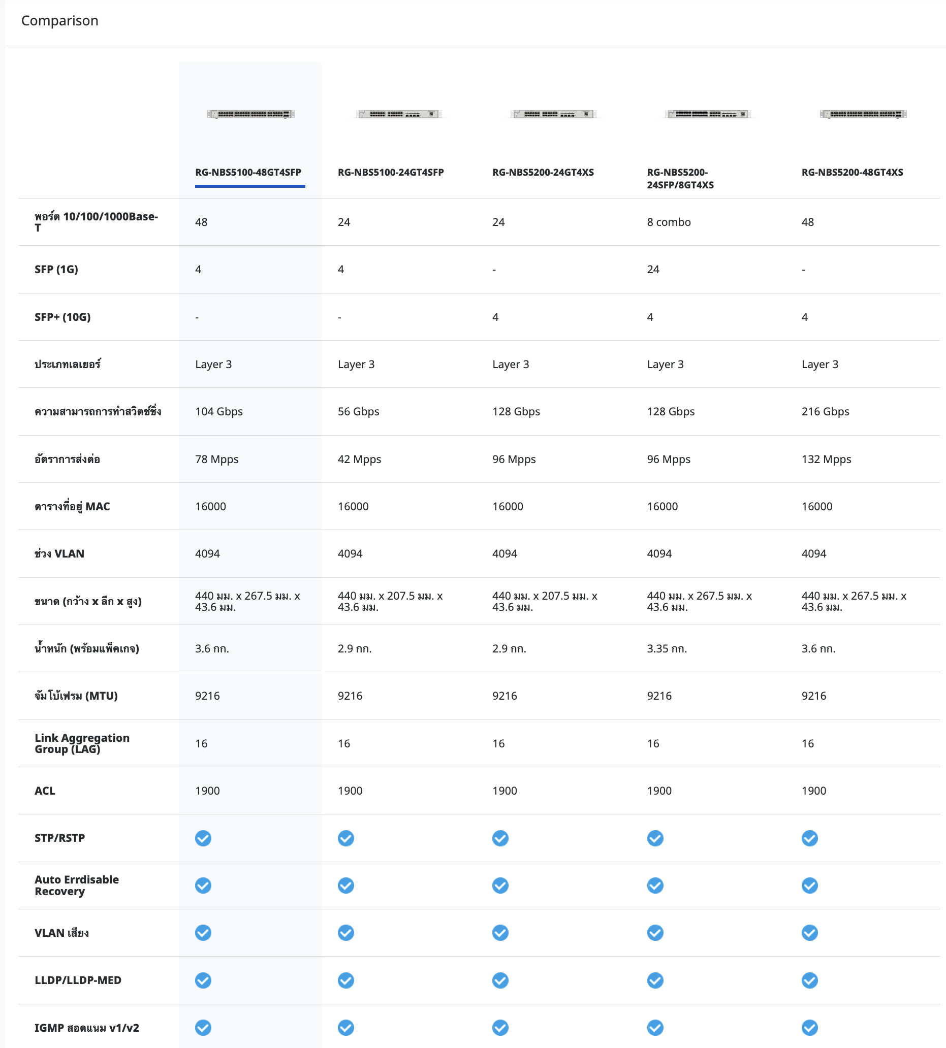 • สวิตช์ 52 พอร์ตกิกะบิต เลเยอร์ 3 ไม่มี PoE , 4 SFP uplink