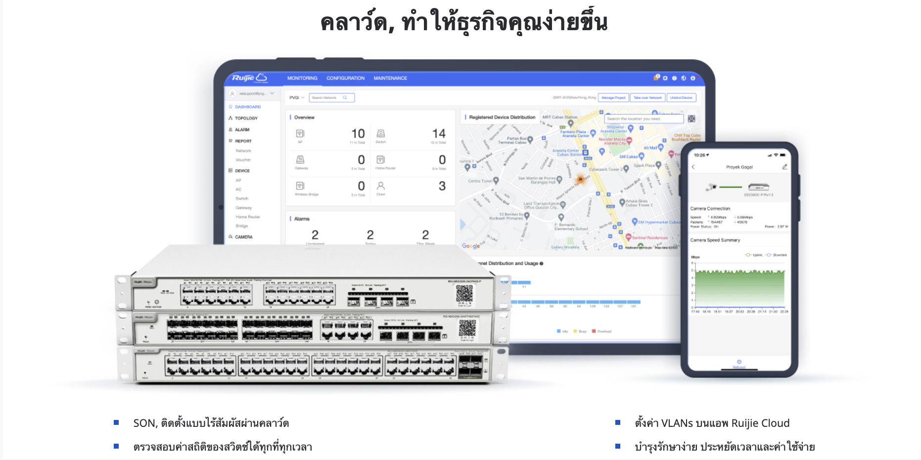 • การจัดการผ่าน Ruijie คลาว์ดได้ตลอดอายุการใช้งานได้ทุกที่ ทุกเวลา