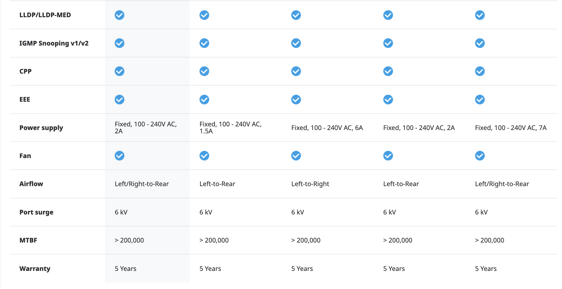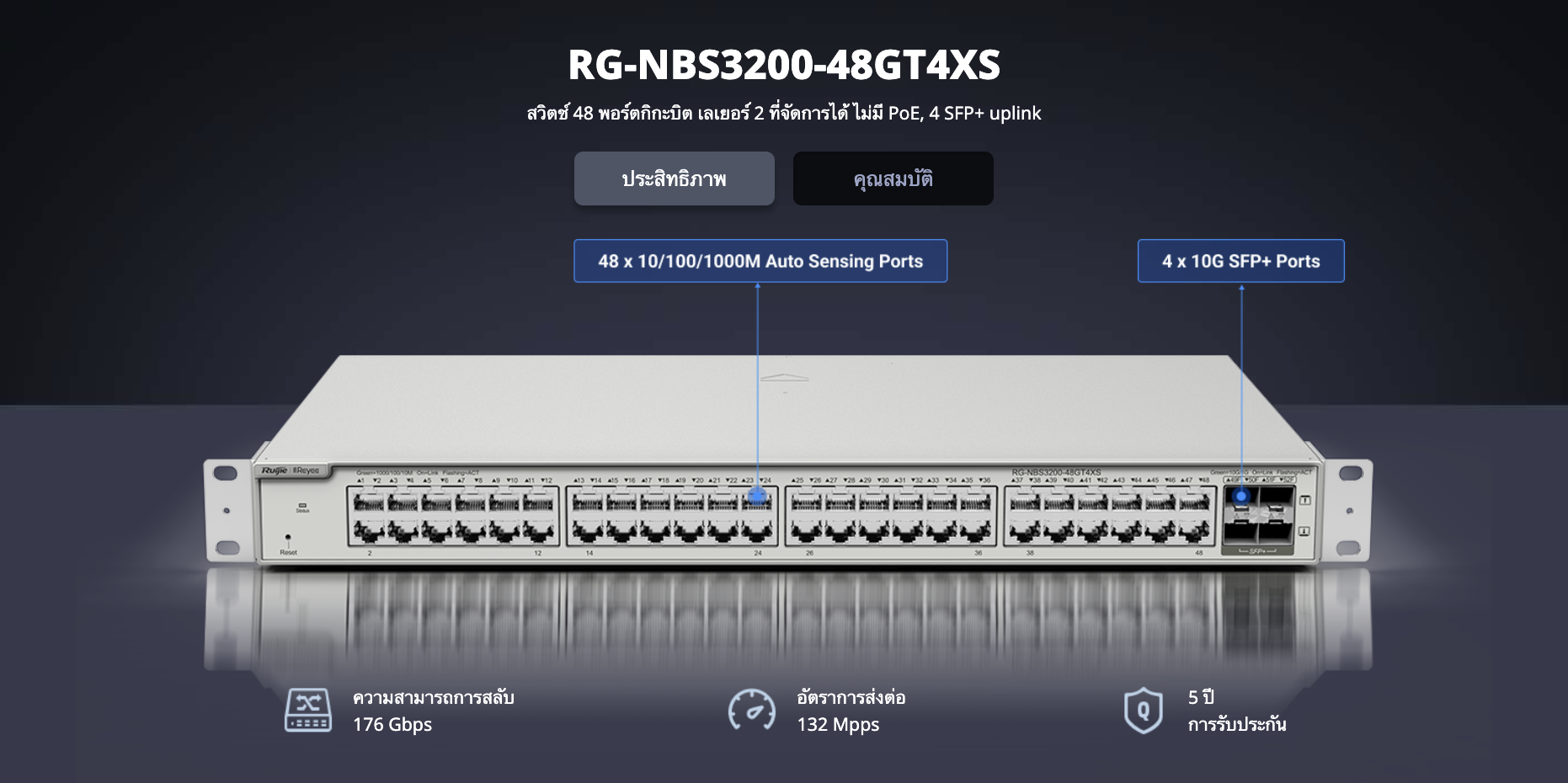 • สวิตช์ 48 พอร์ตกิกะบิต เลเยอร์ 2 ที่จัดการได้ ไม่มี PoE, 4 SFP+ uplink