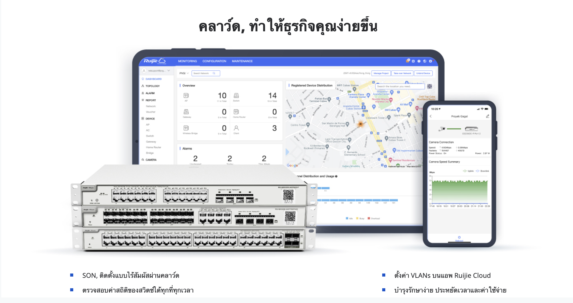 • การจัดการผ่าน Ruijie คลาว์ดได้ตลอดอายุการใช้งานได้ทุกที่ ทุกเวลา