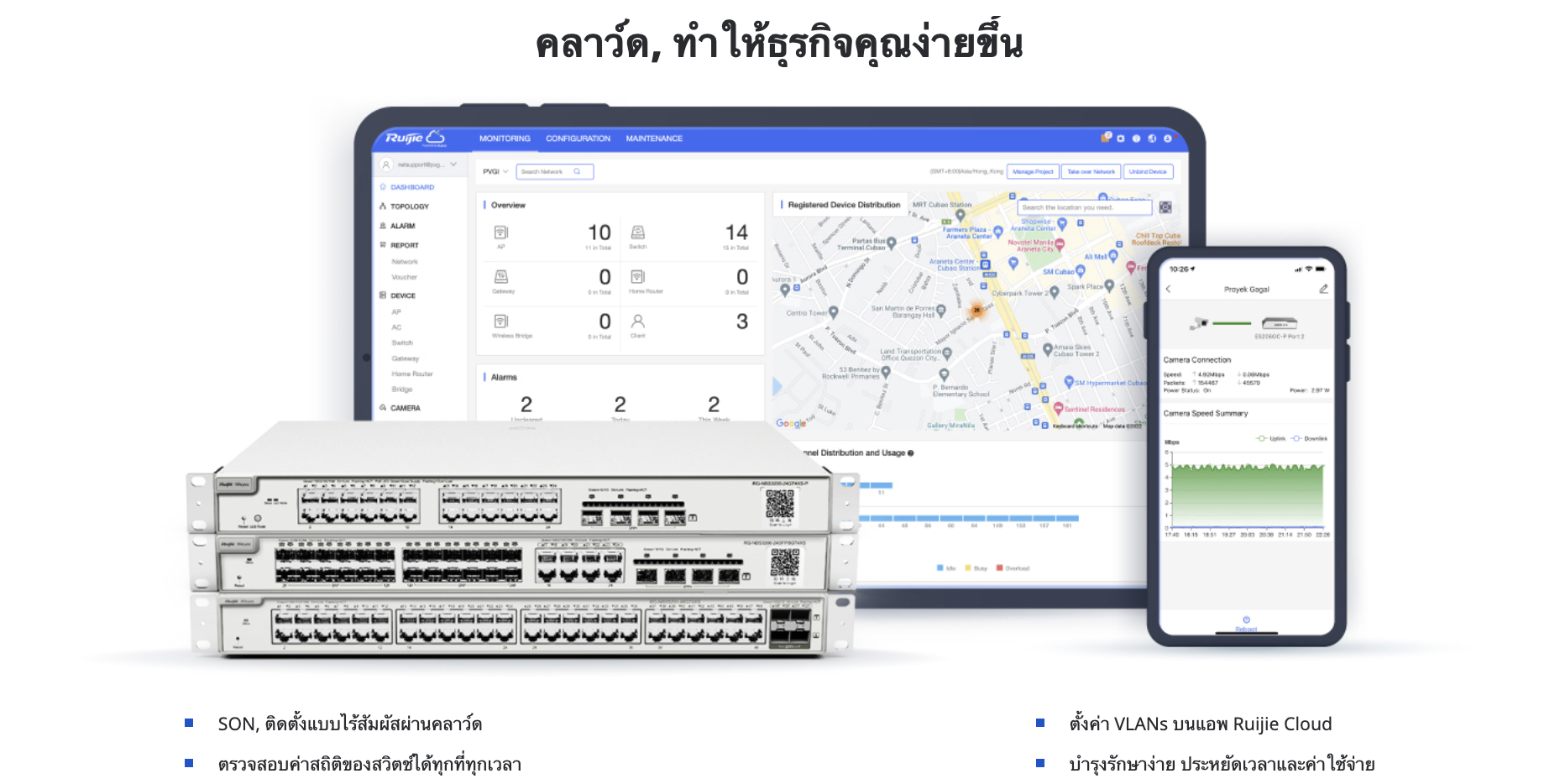 • การจัดการผ่าน Ruijie คลาว์ดได้ตลอดอายุการใช้งานได้ทุกที่ ทุกเวลา