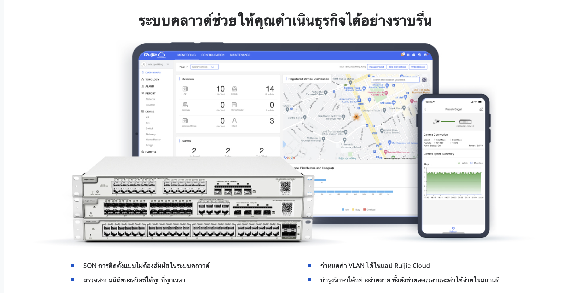 • จัดการผ่าน Ruijie Cloud ได้ทุกที่ทุกเวลาตลอดอายุการใช้งาน