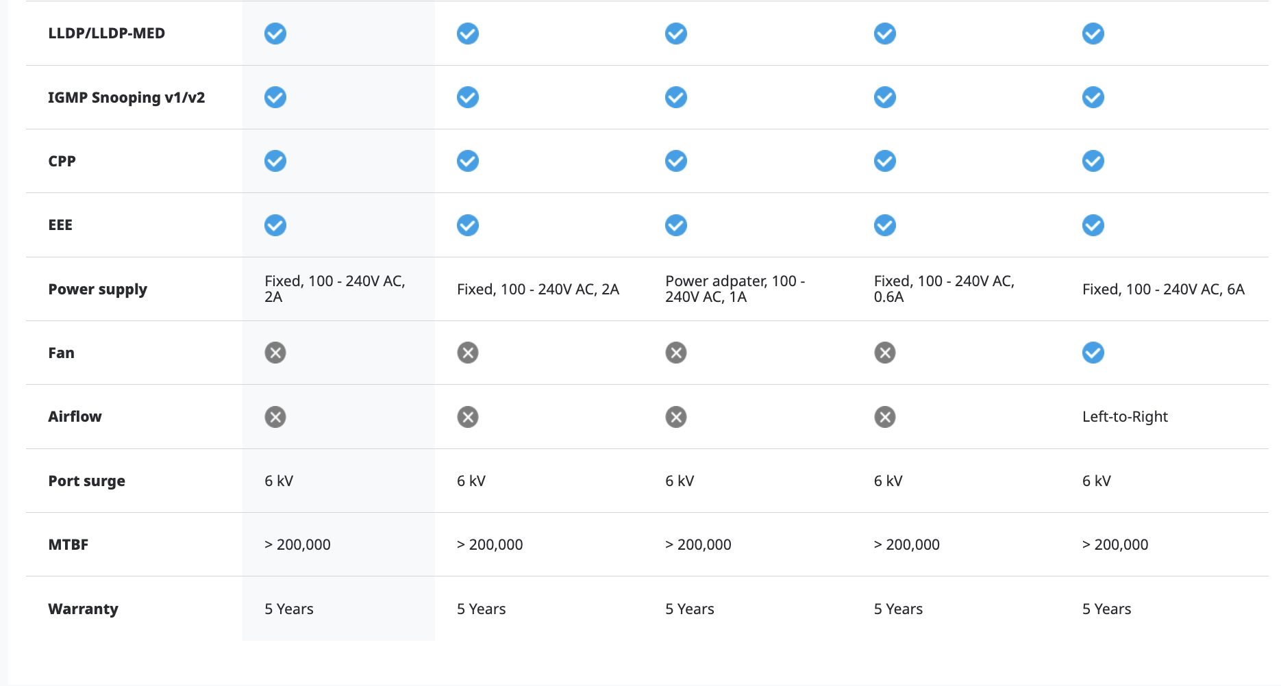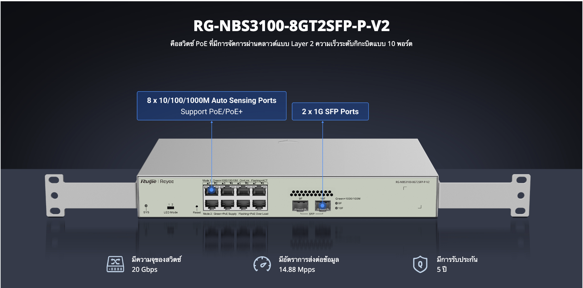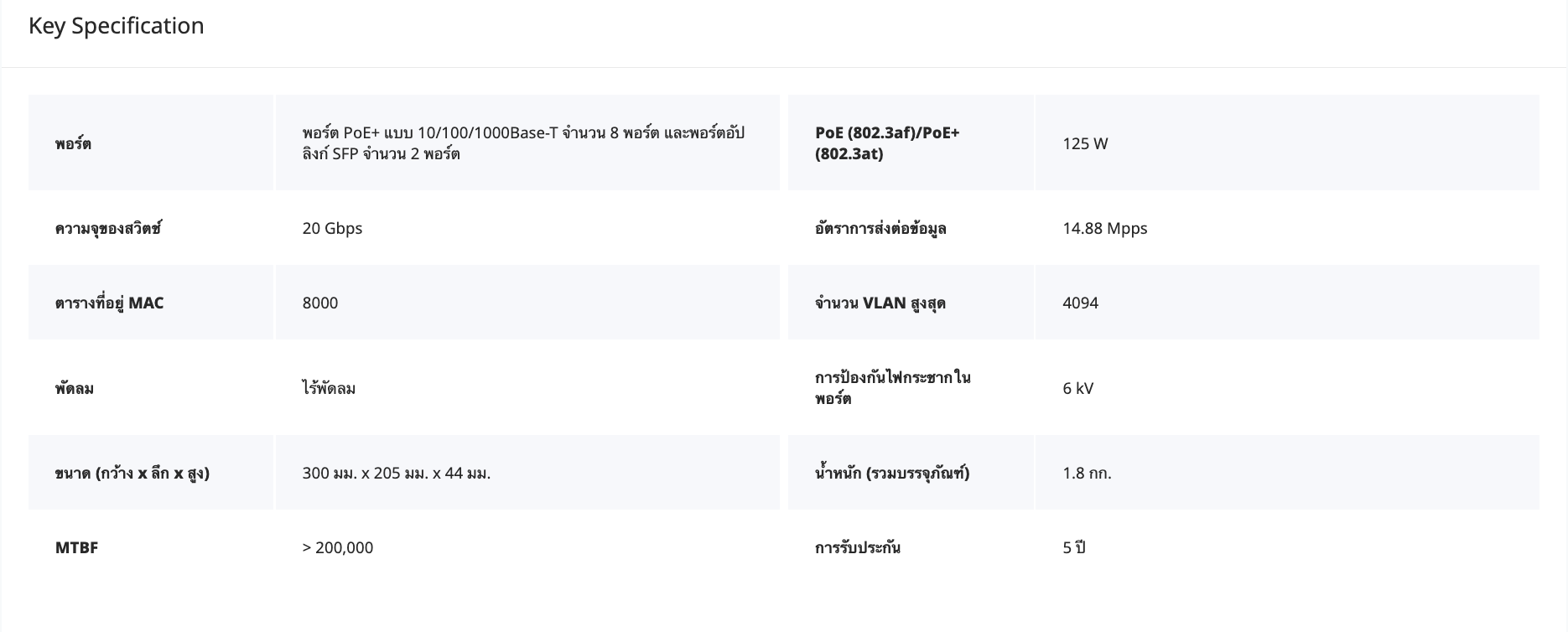 • สวิตช์ PoE ที่มีการจัดการผ่านคลาวด์แบบ Layer 2 ความเร็วระดับกิกะบิตแบบ 10 พอร์ต โดยมีพอร์ตอัปลิงก์ SFP จำนวน 2 พอร์ต
