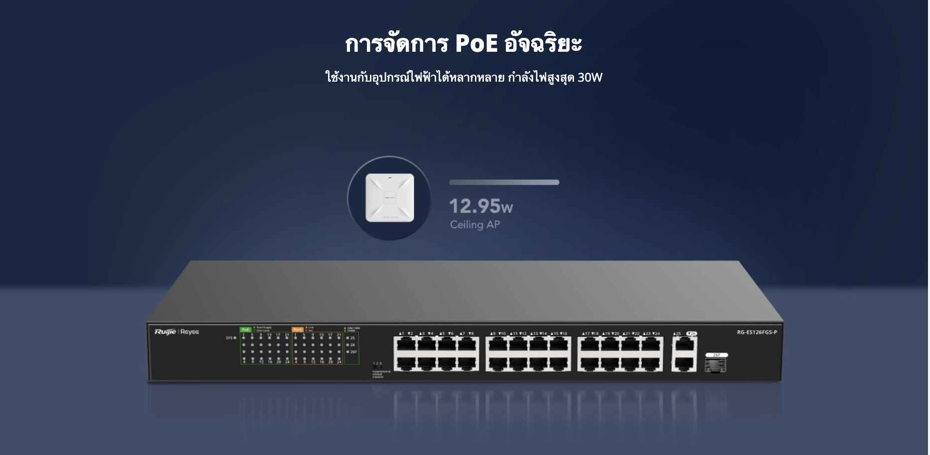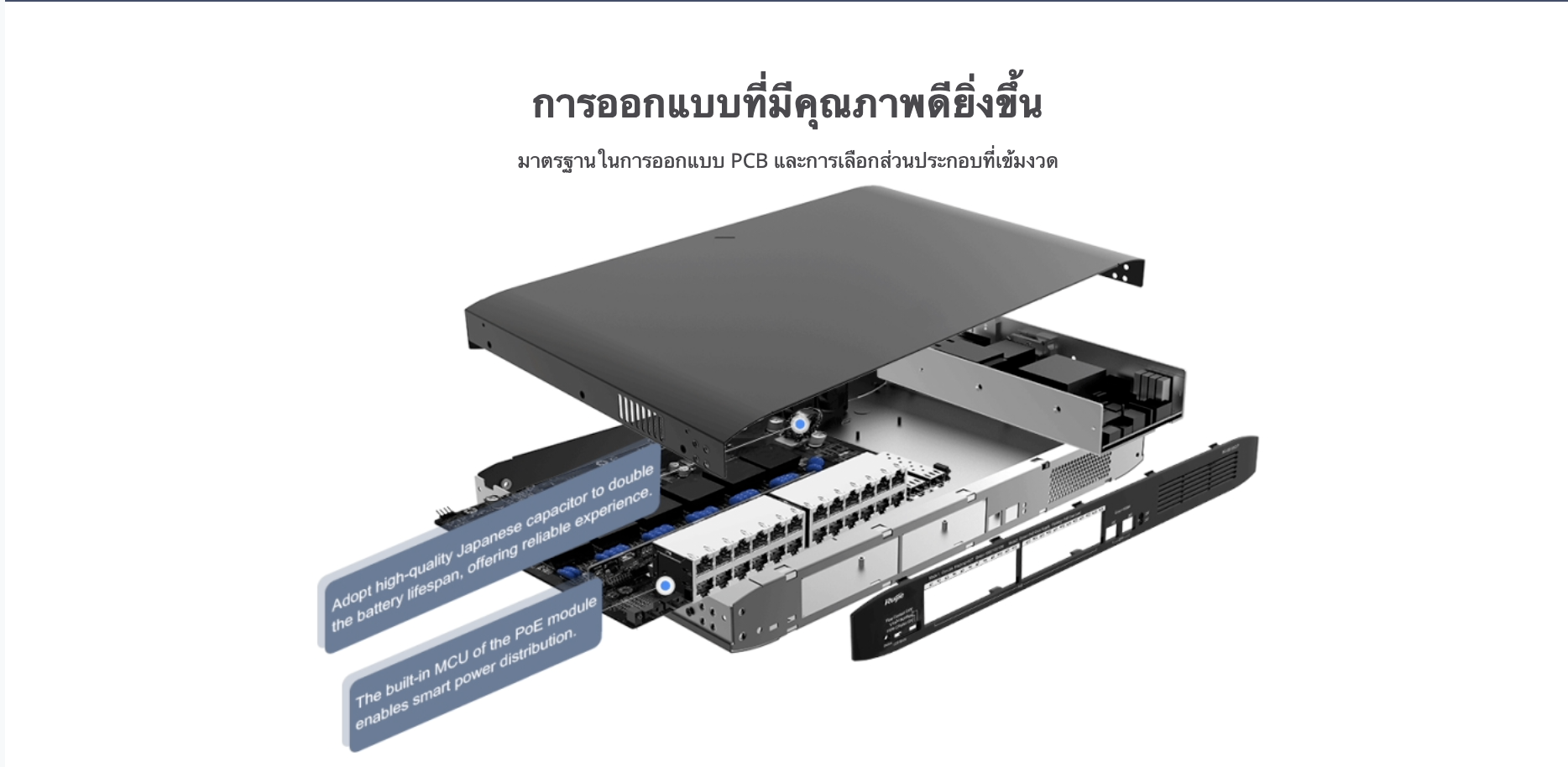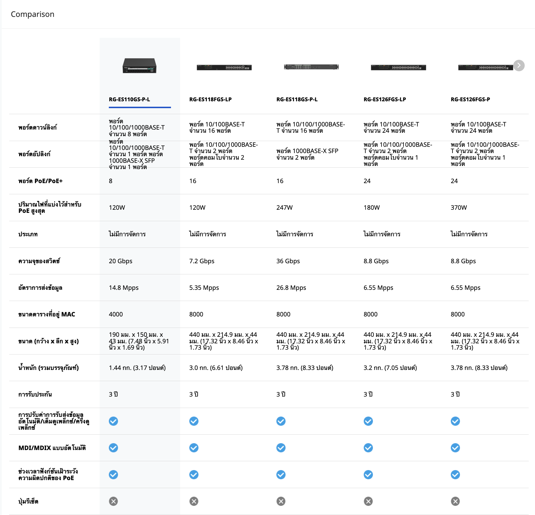 • สวิตช์ที่ใช้ PoE ที่ไม่มีการจัดการโดยมีพอร์ตความเร็ว 10/100/1000 Mbps จำนวน 10 พอร์ต