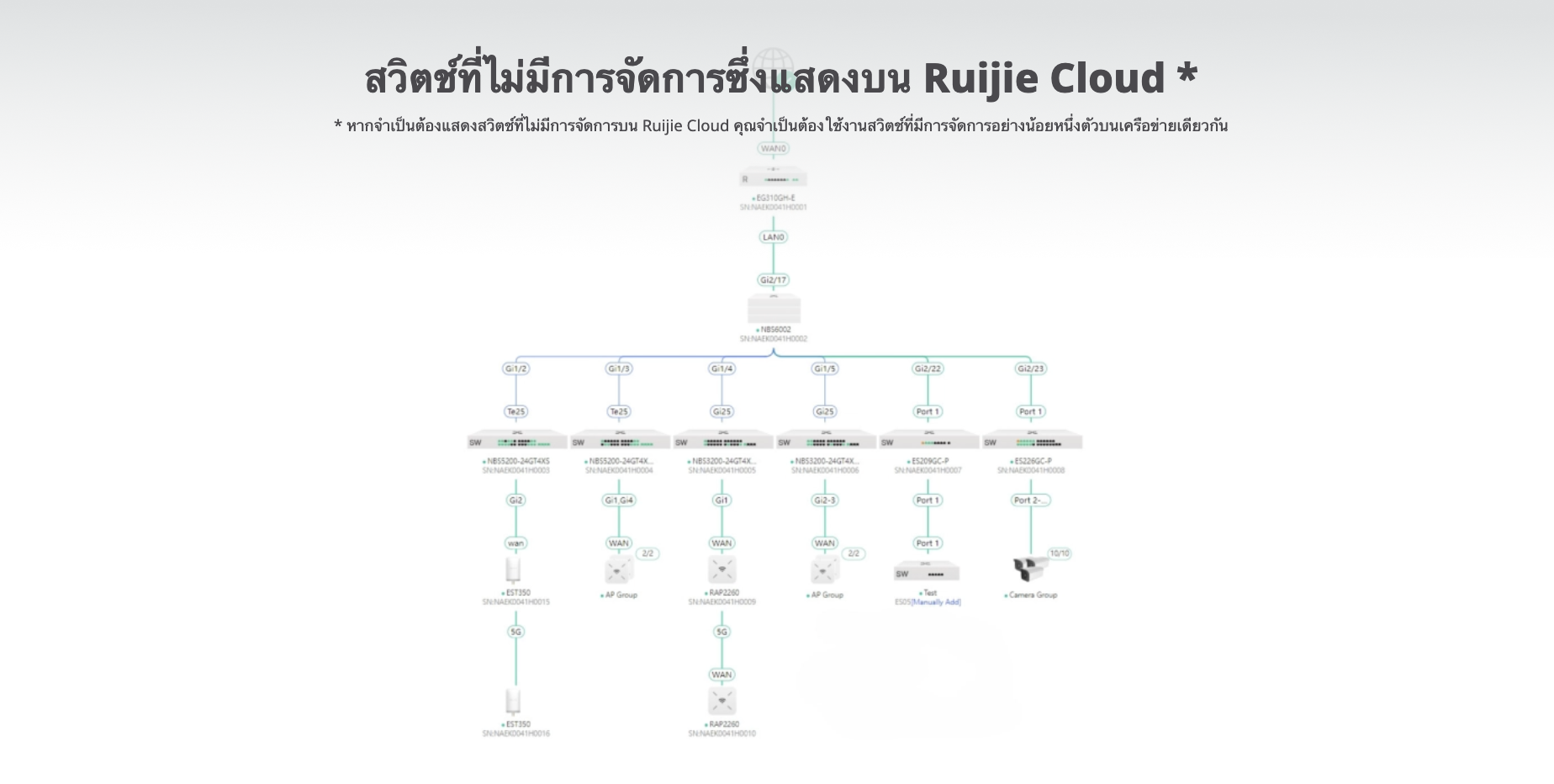 • สวิตช์ที่ไม่มีการจัดการซึ่งแสดงบน Ruijie Cloud